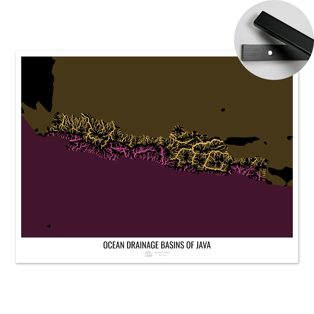 Java Ocean drainage basin map, black v2 Fine Art Print with