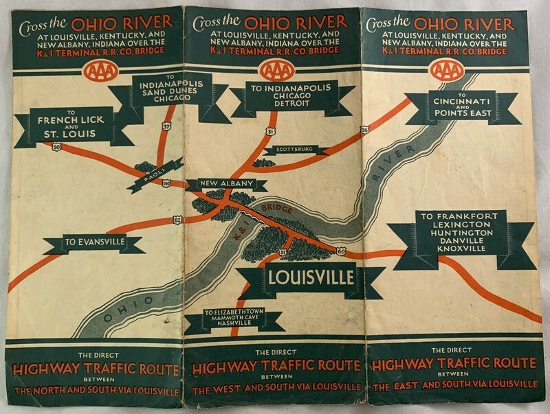 1930 Map Ohio River K&I Railroad Bridge Traffic Road Map