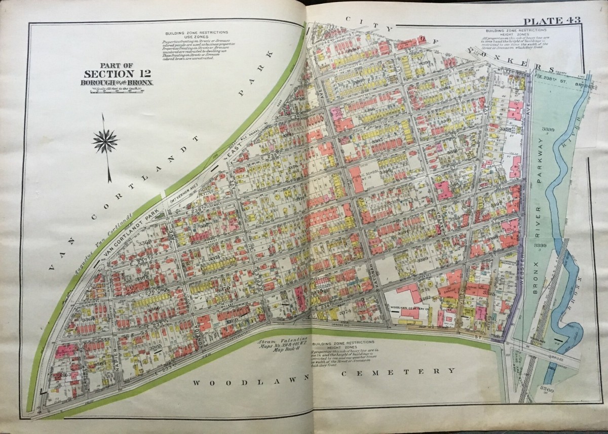 1938 WOODLAWN CEMETERY BRONX NY P.S. 13 BRONX RIVER PARKWAY ATLAS